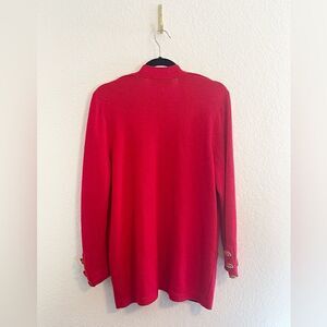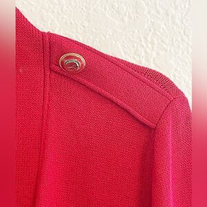 St John Knit Long Jacket cardigan with enameled button design in red. Small