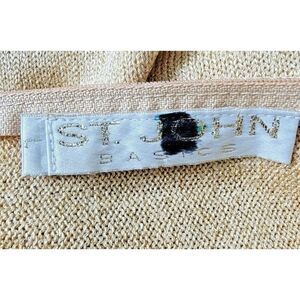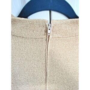 St. John L Vintage Gold Metallic Santana Knit SS Zip Back Sweater Mock Neck.