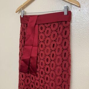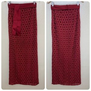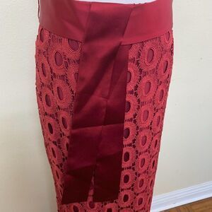 St. John Soutache Pencil Long Skirt 4 Red Silk