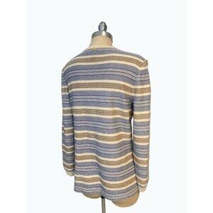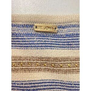 St John Sport Blue Gold Stripe Metallic Studs V Neck Sweater Small