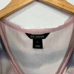 St. John Watercolor Silk Striped Sleeveless Pleated Blouse Women's Size Small