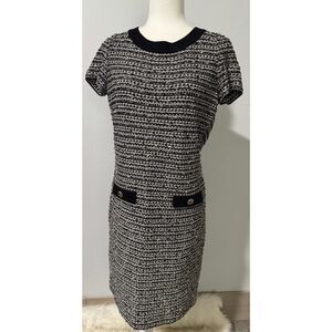 St. John knit tweed black white sheath back zipper gold accent buttons size 4 beautiful stunning dress