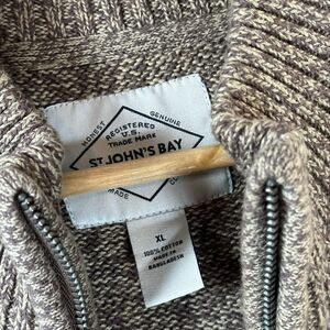 St John’s Bay 100% Cotton Knit sweater mens XL brown 1/4 zip