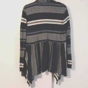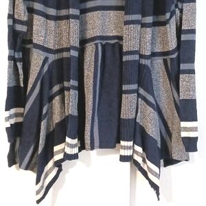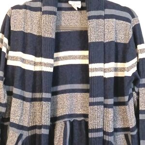 Perfect for Fall & Winter this Open Cardigan is in Shades of Blue, Gray and White.