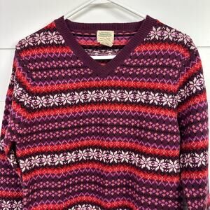 St. John's Bay 100% Lambswool Fair Isle V-neck Pullover Sweater Purple sz S