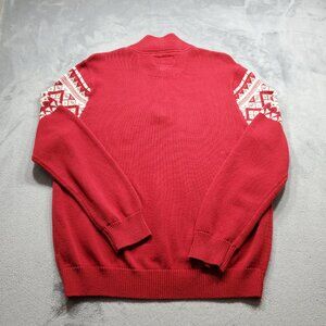 St John's Bay 1/4 Zip Ribbed Holiday Sweater White Red %100 Cotton Men Sz L