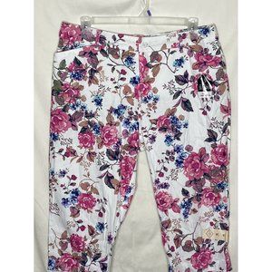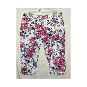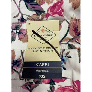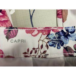 St John's Bay (18) Crop White Pink Floral Stretch Capri Pants