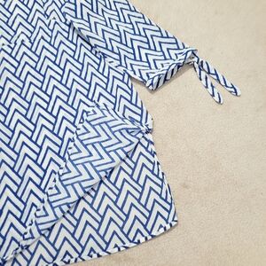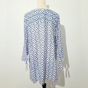 St. John’s Bay 1X Blue White Chevron Print Cotton Tunic Blouse Tie Sleeve Boho