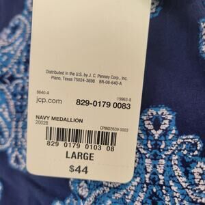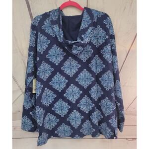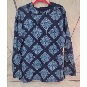 St John's Bay Active Large Blue/Navy Medallion Long Sleeve Hooded Shirt