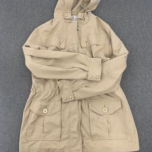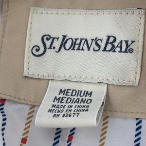 St. Johns Bay Beige Hooded Jacket Medium Long Sleeve Pockets Cotton Nylon Poly