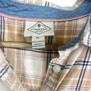 St. John’s Bay Beige Pink Blue Plaid Button Down | Size Petite Large