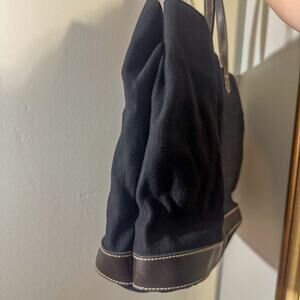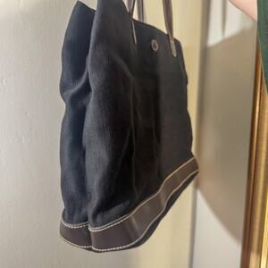 St. John's Bay Black Canvas Tote Bag | Brown Leather Trim | Y2K Minimalist