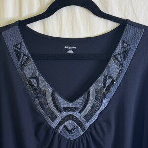 St Johns Bay Black Embellished Beaded & Embroidered Long Sleeve Top Size 1X