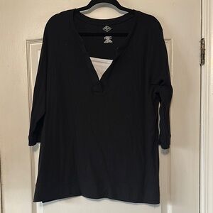St. John's Bay Black Relaxed Blouse with V-Neckline