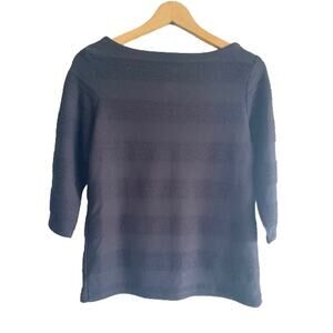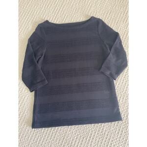 St John’s Bay Black Ribbed Textured Stripe 3/4 Sleeve Top Sz PS
