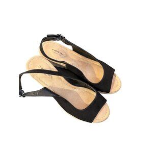 St. Johns Bay Black Wedge Sandals Womens Size 7.5 Open Toe Slingback