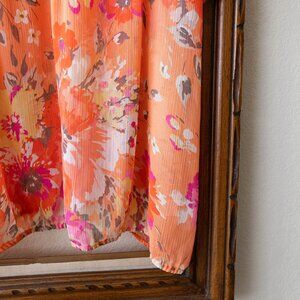 St. John’s Bay Blouse Size 1X Semi Sheer Orange Floral Top Boho Chic Shirt