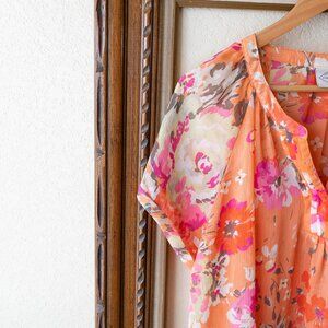 Color/Print: Orange with multicolor floral design (pink, red, tan, white)