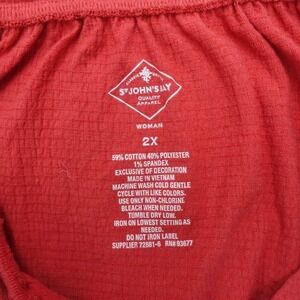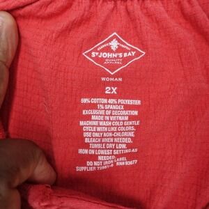 St. John's Bay Blouse Womens 2X Red Cotton Stretch Drawstring Neck Short Sleeve