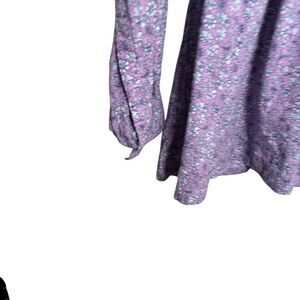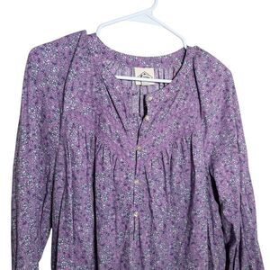 St John's Bay Blouse Women's Large Purple Floral Round Neck 3/4 Sleeve Top