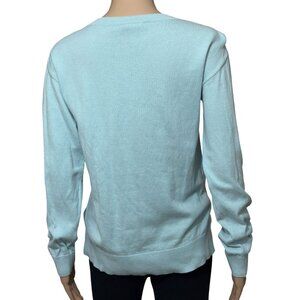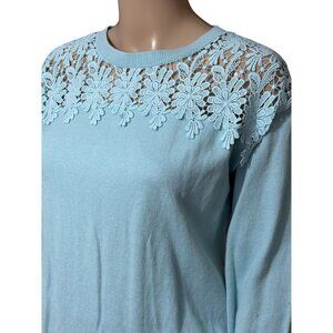 St John's Bay Blue Floral Sweater with Lace Size Medium
