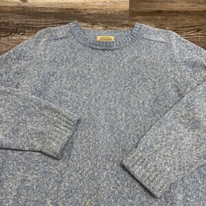 Cozy blue sweater. Soft knit fabric. Perfect for casual wear.