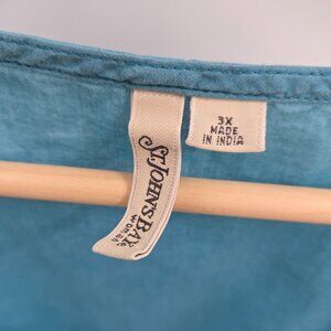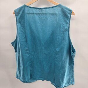 St John's Bay Blue Teal Sleeveless Embroidered Cotton Buttoned Down Blouse 3x