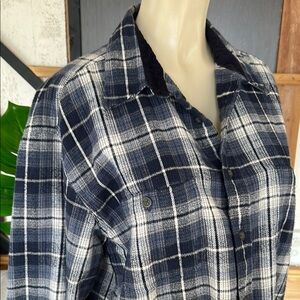St. John’s Bay Blue and White Plaid Button-Up Shirt size Large