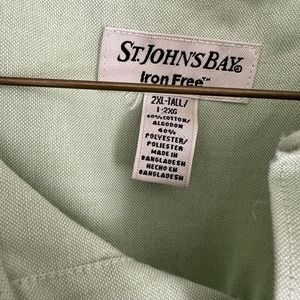 St. John's Bay Button Down Shirt Men's 2XL Tall Green Short Sleeve Iron Free