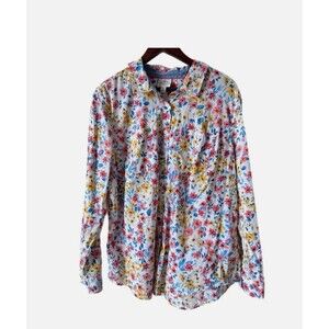 St John’s Bay Button Up Shirt Floral Print 100% Cotton Lightweight Sz XXL