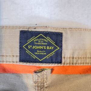St John's Bay Cargo Shorts Men's W45 L21 Khaki with Orange Contrasts