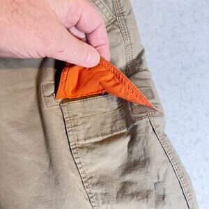 St John's Bay Cargo Shorts Men's W45 L21 Khaki with Orange Contrasts Hook & Loop