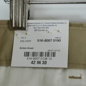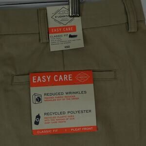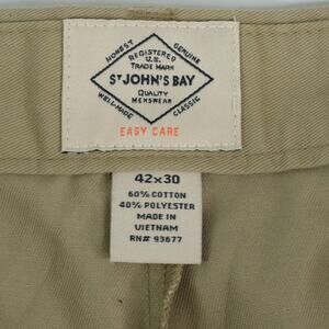 St Johns Bay Chino Pants Mens 42x30 Khaki Easy Care Classic Fit Pleat Front