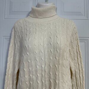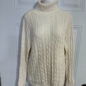 St. John's Bay Classic Cream Cable Knit Turtleneck Sweater SZ Large Beige