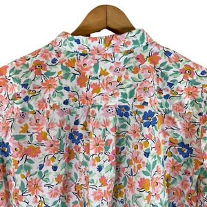 St. Johns Bay Colorful Floral Button Up Shirt Plus XXL 100% Cotton Long SleevesPink Green Orange Yellow White Multicolor