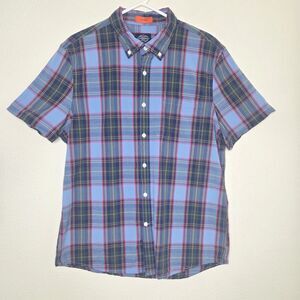 St. John's Bay Comfort Flex No Tuck Button-Down Shirt sleeve Shirt Mens Size LARGE Multi-Colored Plaid Preppy Spring Classic Shirt in good pre-owned condition! Please see photos for approximate measurements.