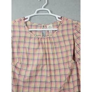 St John's Bay Cotton Blend Multicolor Check SS Peasant Blouse Women's Plus 0X