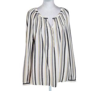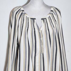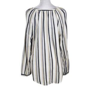 St. John's Bay striped blouse with a cotton blend fabric, roll-tab sleeves, and smocked accent. Colors are white, cream, black and gray. Same-day shipping for orders received on weekdays by noon CST. Make me an offer!