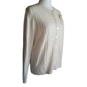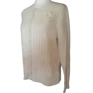 St. Johns Bay Cream Open Pointelle Knit Button Front Cardigan Angora Blend Large