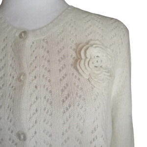 St. Johns Bay Cream Open Pointelle Knit Button Front Cardigan Angora Blend