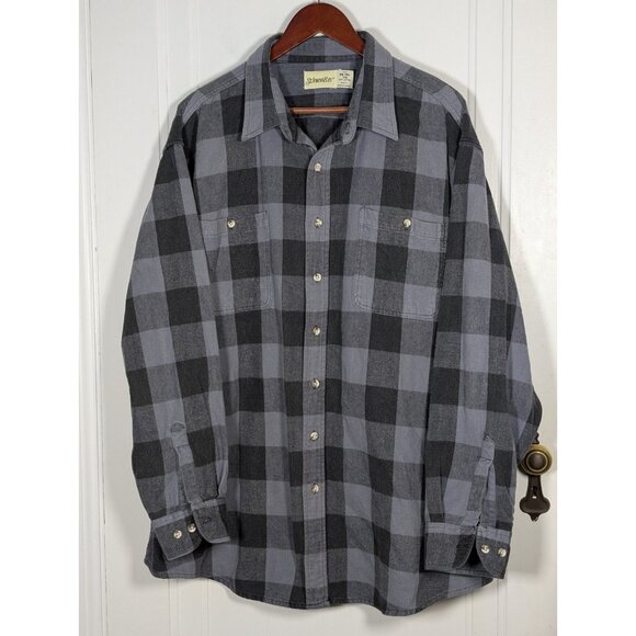 St. John's Bay Flannel Shirt Men's 3XL Tall Lumberjack Plaid Black Gray VTG