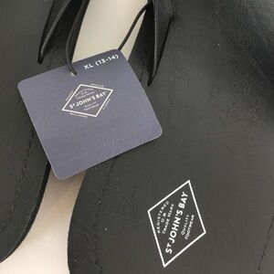 St. John’s Bay Flip-Flop Sandals Black NEW Size XL 13-14 NWT Faux Leather