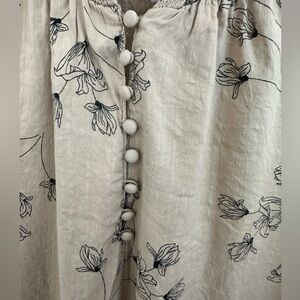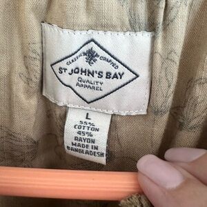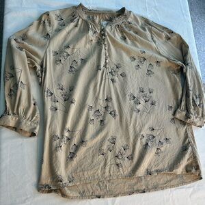 St Johns Bay Floral Peasant-Feel Blouse Size Large Tan/ Black Romantic Feminine