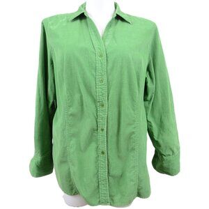 St. John's Bay Green Corduroy PLUS Size 2X Satin Cuffs Button Down Shirt Top
