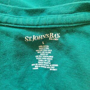 St. Johns Bay Green Floral Graphic Short Sleeve T-Shirt Womens L 100% Cotton Cas