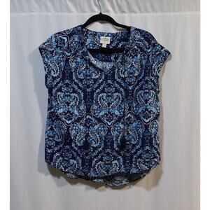 St. John's Bay Hi-Lo Blue Multicolored Floral Sleeveless Size PXL Blouse