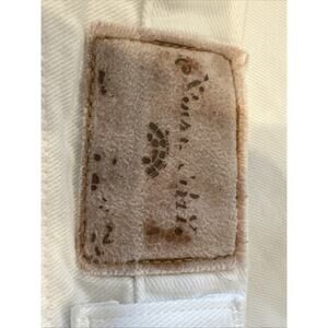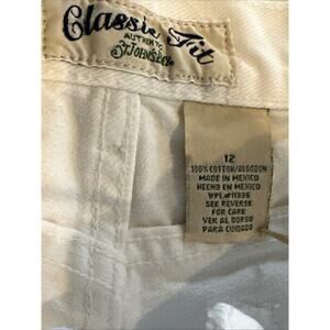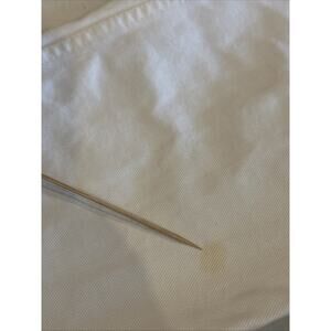 The St. John's Bay Women's 12 White Light Wash Straight Leg Jeans are a timeless classic in a stylish white denim. These jeans feature a high-rise, comfortable fit with a straight leg and a slim cut. The light wash adds a versatile touch, while the 5-pocket design adds practicality. Made from cotton denim, these jeans are easy to care for with machine washable instructions. Perfect for everyday wear, these St. John's Bay jeans are a wardrobe staple for any woman looking for a classic and comfortable style. There is a very light spot on the left leg that most likely will come out with bleaching. It’s really not noticeable unless you’re very up close searching for it. See my zoomed in picture. The spot I’m pointing to in the second and fourth picture is the same spot. The logo on the back of the pants show signs of wear