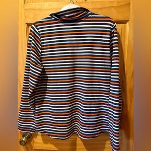 This Stylish St John’s Bay striped quarter-zip pullover with a mix of colors. Is made of Soft & Comfy French Terry Multi Navy Orange Pink White Light Blue. Perfect for casual wear. Any Questions leave in comments please. See measurements and compared to other pullovers in your closet to ensure a proper fit for you Used in good condition has been washed and dried.