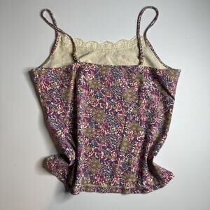St Johns Bay L Floral Cami Lace Trim Tank Top Y2K Cottagecore Soft Stretch