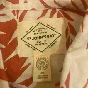 St. John's Bay Leaf Palm Print Button Down Shirt Red & White Men size XXL 2XL